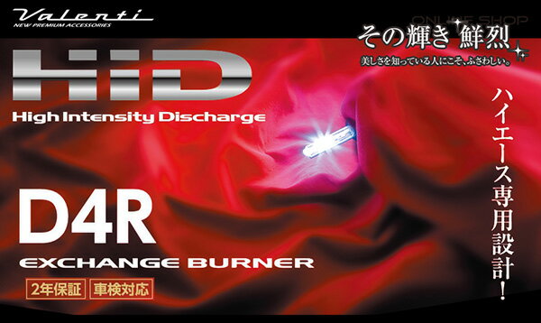 UVカット効果により、ヘッドランプのレンズやリフレクター部へ与える「紫外線」によるダメージを軽減しますガラス管の固定には純正同様に「メタルプロップ」を採用、「強度」「耐久性」「耐振性」に優れ、長期にわたり安定した動作と精度の高い配光を実現専用取り扱い説明書付属専用ラインナップ【適合車種】トヨタ ハイエース/レジアスエース型式:KDH2##/TRH2## 年式:2010.7〜2013.11 3型HIDヘッドランプ車明るさ:6700K・2200lm電圧:12V車専用消費電力:35Wカラー:クールホワイト6700K品番:HD200-D4R-67メーカー:ヴァレンティ/Valenti