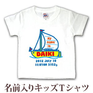 Tシャツ 誕生日 プレゼント 出産祝い 名入れ 名前入り キッズ ベビー 半袖 手描き風デザイン ヨット 男の子 服 誕生日プレゼント 百日祝い 【メール便対応】 【ココロコ】
