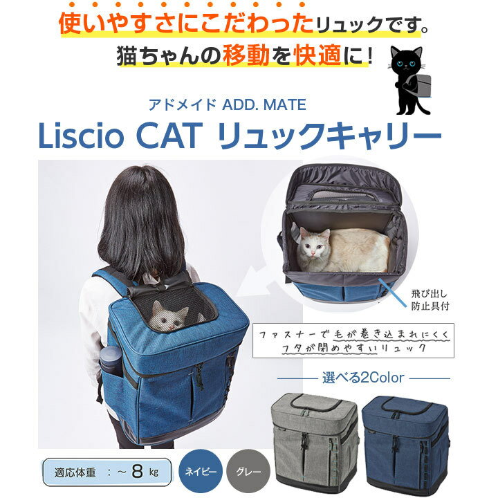猫用 リュックキャリー Liscio CAT グレー ネイビー 8Kgまで ペット ペット用品 犬用品 キャリーバッグ リュック