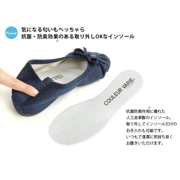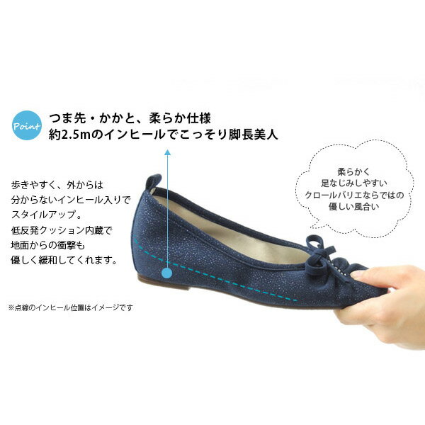 見た目はぺたんこ風ですが、約2.5cmのインヒールで歩きやすく 店頭でも定番の人気商品です。